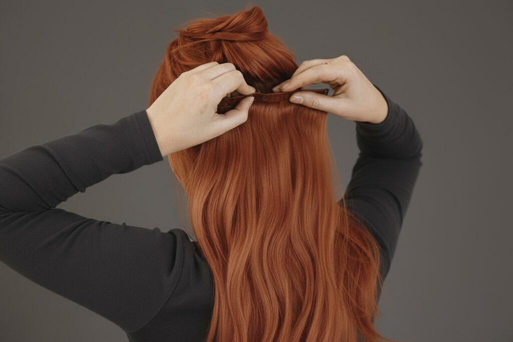If you’re unfamiliar with hair extensions, think of it like setting a solid foundation before building a house. Smart placement strategy involves creating what hair stylists call a “buffer zone.” This means intentionally sectioning off and leaving down a top layer of your natural hair all around the areas where you’ll be clipping in the extensions, to cover the topmost wefts while also avoiding placement too close to the hairline or parting. This top layer of your hair acts like a natural curtain, draping over and hiding the clips and the top seams of the hair extensions beneath it.